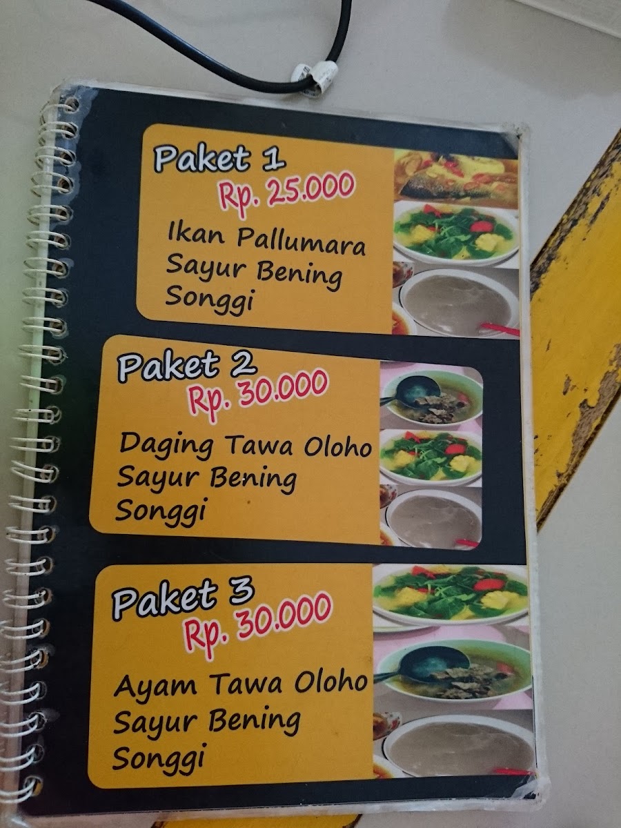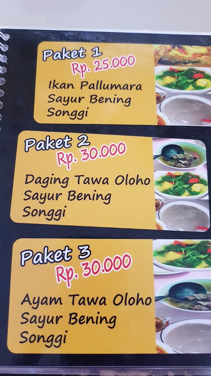The restaurant also provides complete meal sets such as the Paket Sinonggi Ikan Palumara, which pairs Sinonggi with a fish dish in a well-balanced meal. For a more extensive meal, the Paket 1 Sinonggi Ikan Palumara Dan Sayur Bening includes the same Sinonggi and fish combo, but with a side of Sayur Bening, a clear vegetable soup that adds freshness to the dish.